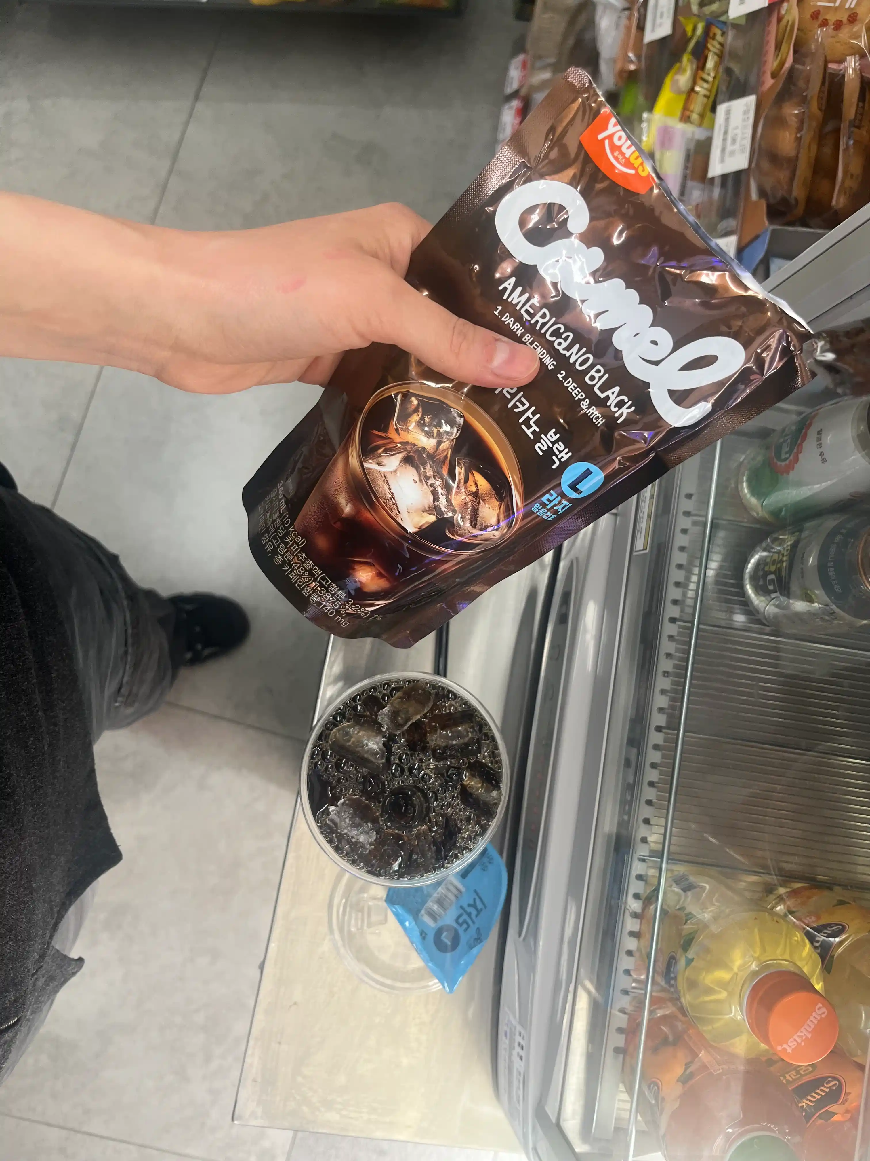 Heute war unser letzter Tag in Seoul. Morgen früh fahren wir mit dem Zug nach Cheonan Verwandte besuchen und dann von dort weiter nach Gyeongju< Ich bin sehr gespannt auf morgen! Der heutige Tag geht los mit Kaffee vom convenience store — war gut und hat super wenig gekostet. Vor allem den Vorgang alkes auf und einzugießen mochte ich.