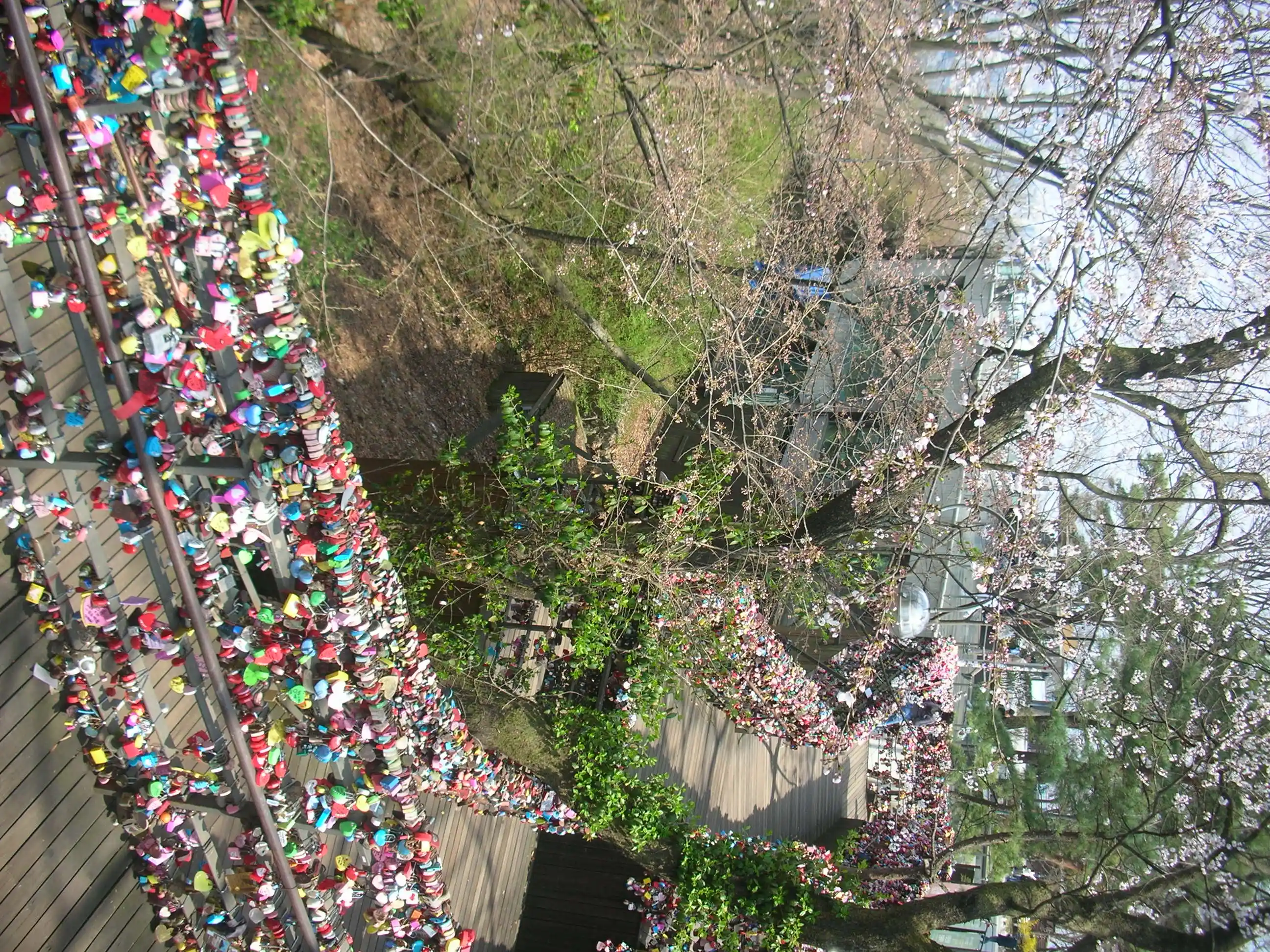 Ich hab mich auf Aussucht, Stille und Natur gefreut und wurde von einem Turm-förmigen Restaurantkomplex mit Gift shop und lauter Musik begüßt. Bevor ich schlechte Laune bekommen habe sind wir noch an den Geländern mit den Herzschlössern langgelaufen — so wie in Paris eben.