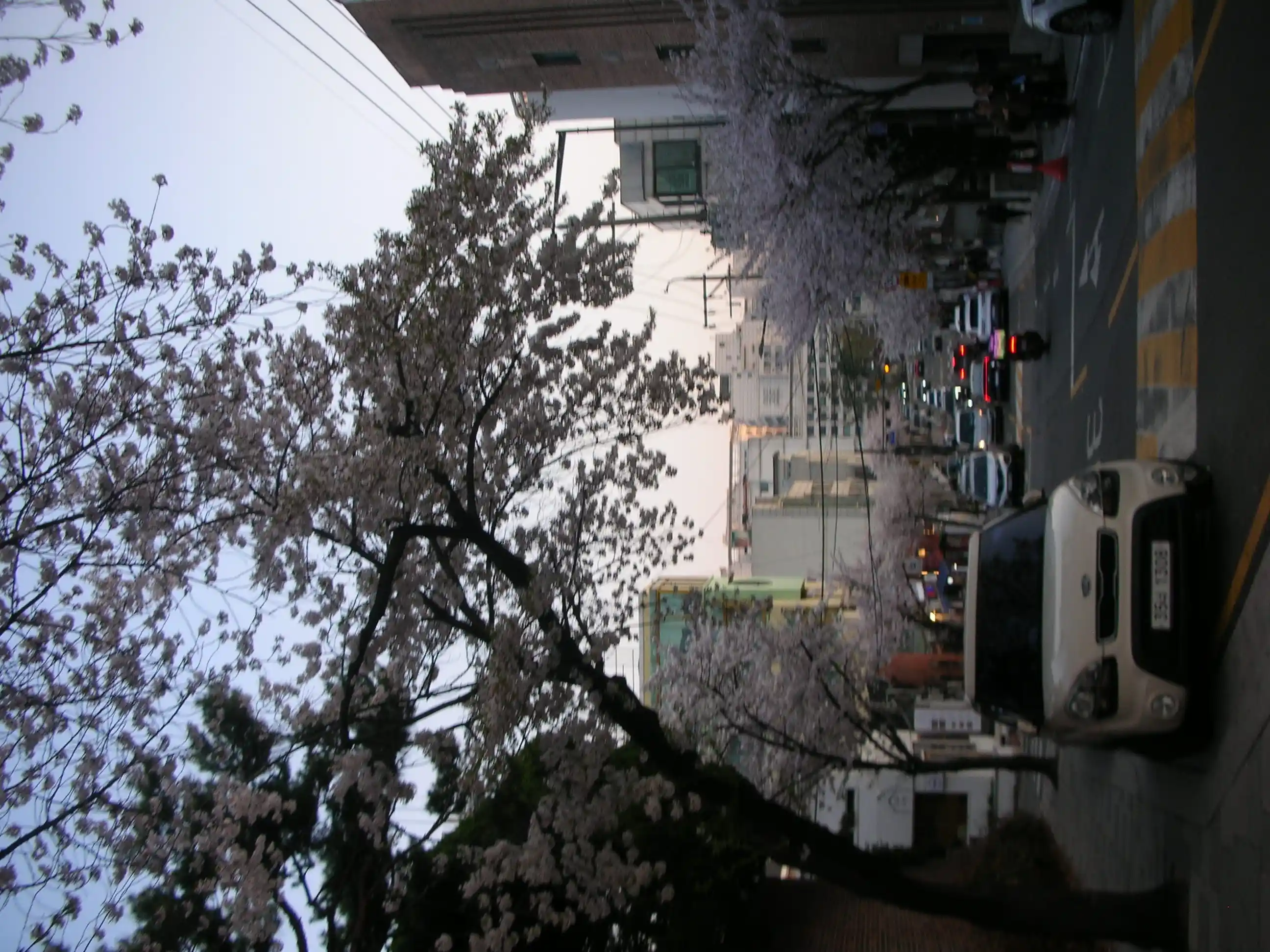 Vom Convenience store ging es zu Fuß Richtung Namsan Tower und dann mit der Gondel nach oben. Vom Convenience store ging es zu Fuß Richtung Namsan Tower und dann mit der Gondel nach oben. Es ist gerade Kirschblüten-Zeit und deshalb sind überall in der Stadt es wunderschöne rosa Flecken verteilt.