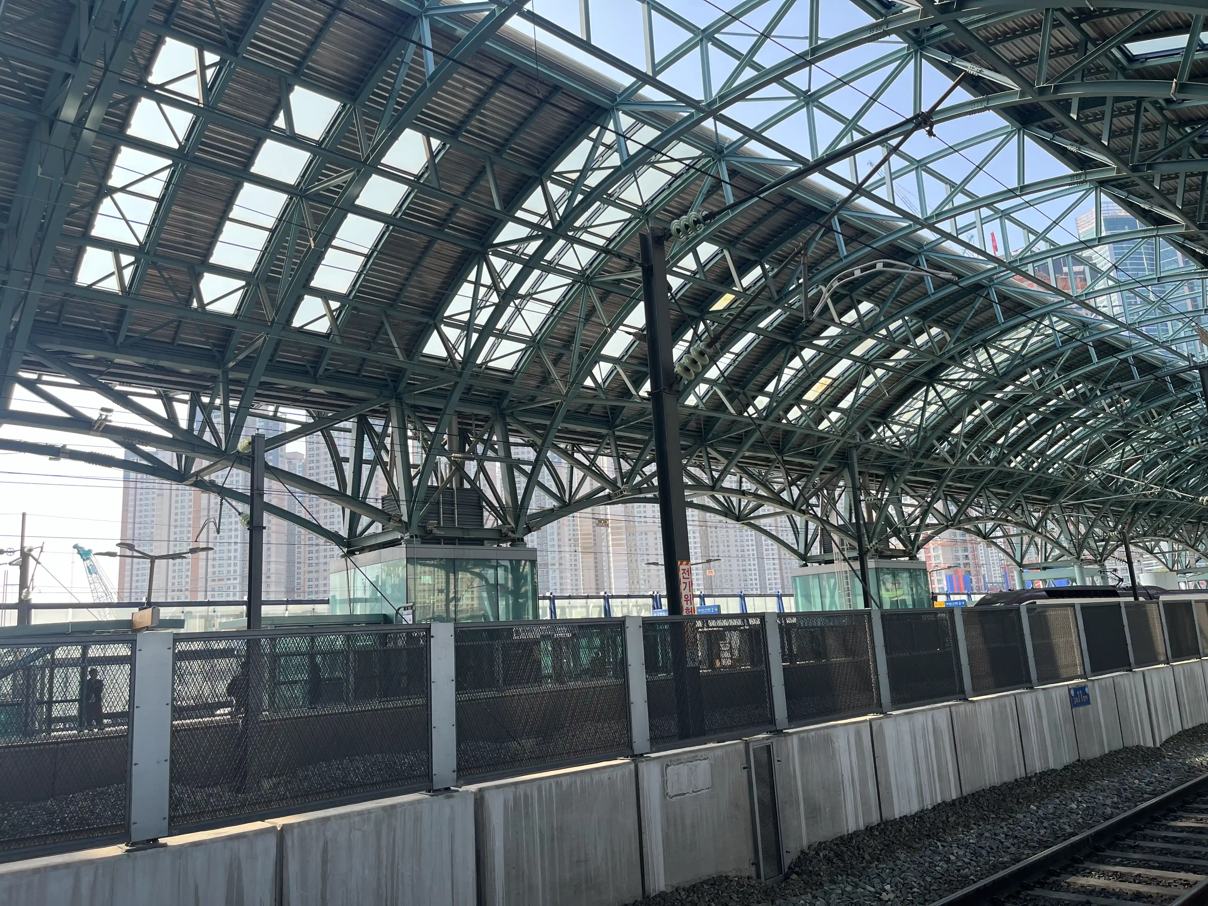 Morgens sind wir früh raus, Kaffee zum mitnehmen und dann in den Zug nach Cheonan eingestiegen.