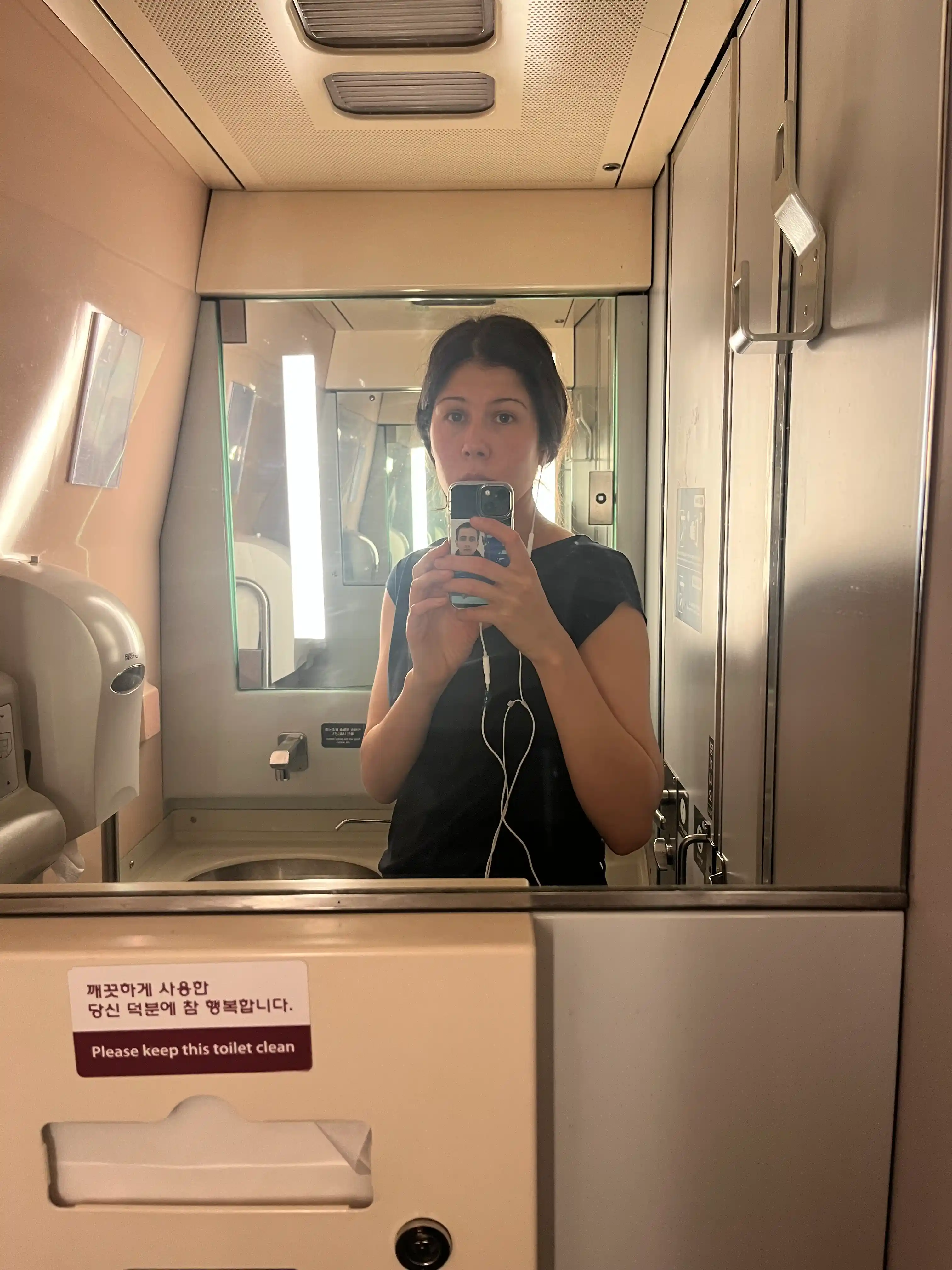 Der Zug war extrem voll und wir konnten keine Karten mit Sitzplatz mehr buchen, deshalb standen und saßen wir 1 1/2 Stunden im Gang.. Just like at home — DB vibes. So schön, wenn einen in weiter Ferne etws an Daheim erinnert.