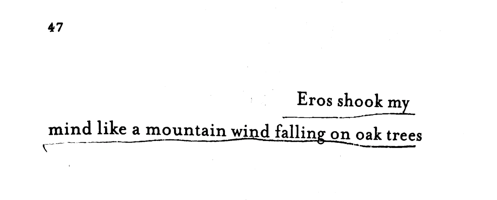 (Sappho (Transl. Anne Carson), Fragment 47 )(Mein Liebstes.)