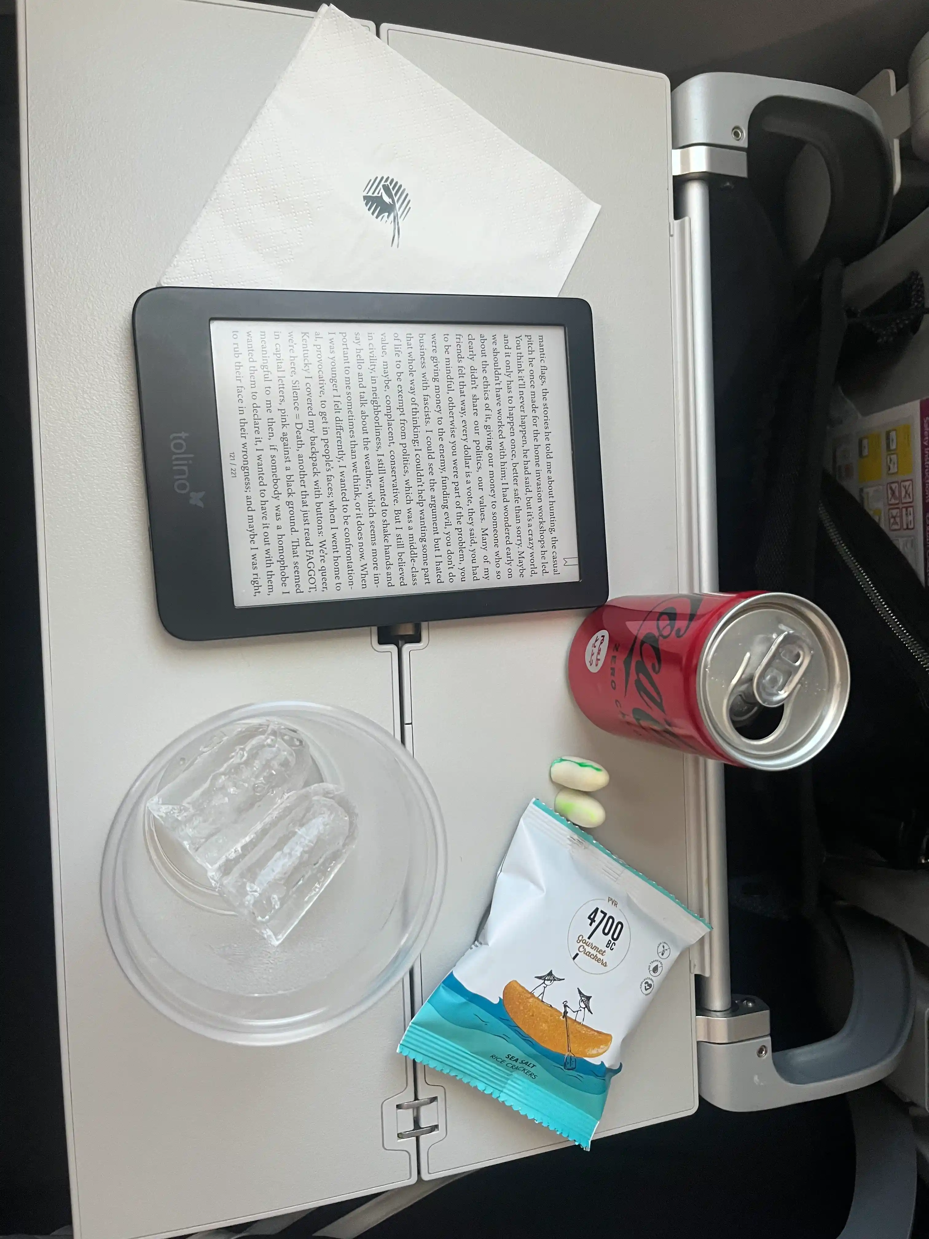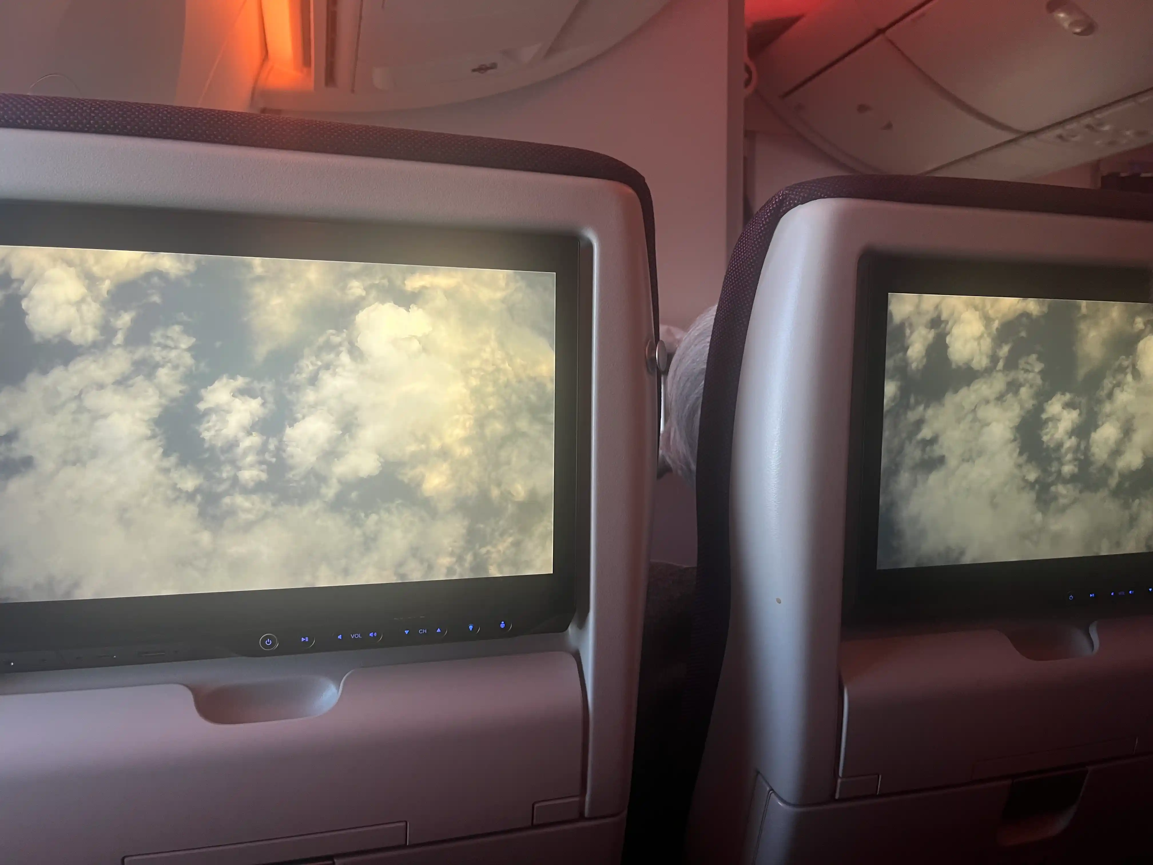 Mein Higlight war die Kamera die unter dem Flugzeug angebracht war und der mann dann über einem Livefeed auf dem Mini-Fernseher zuschauen konnte wie sie durch die Wolken fliegt.