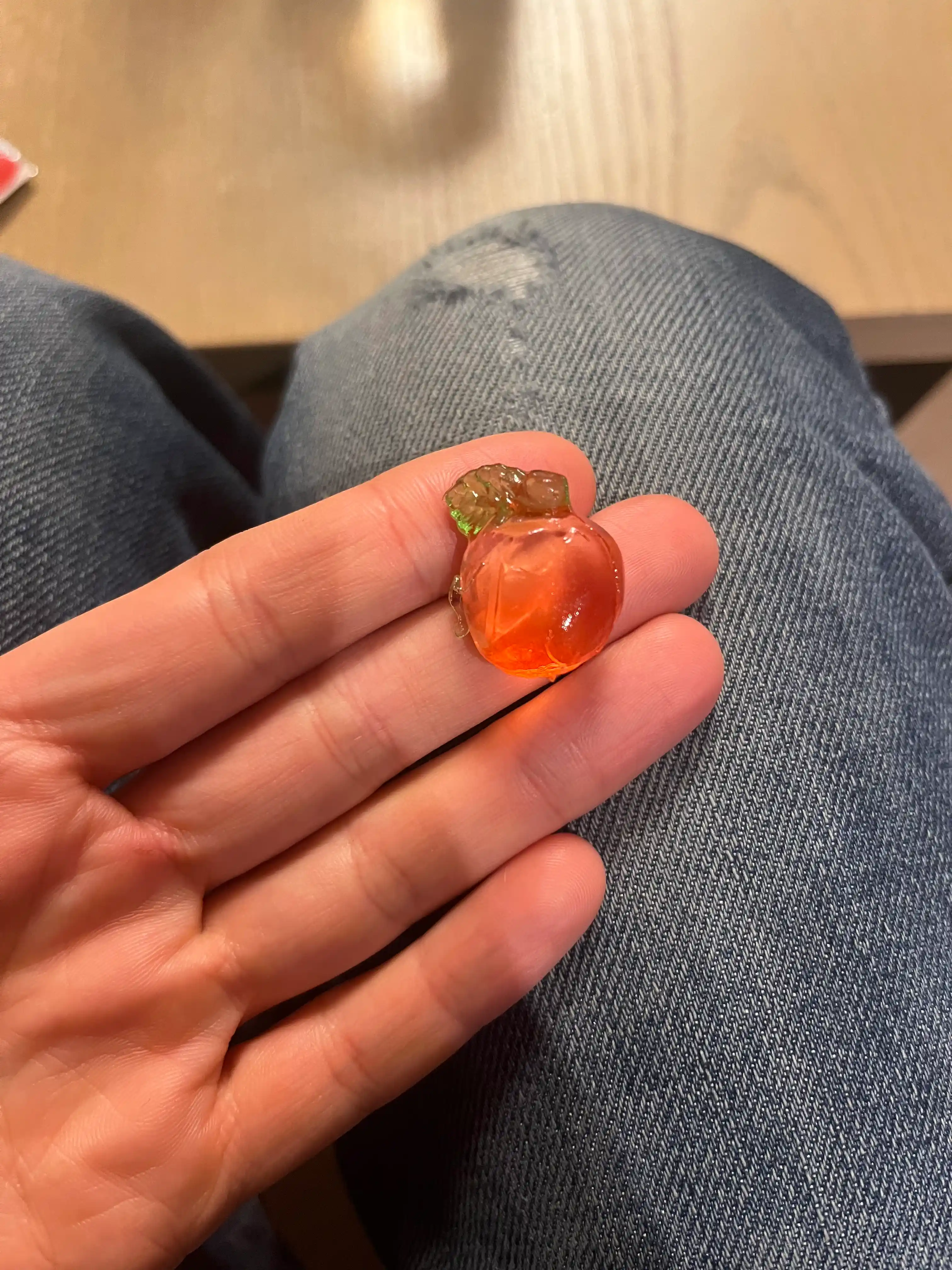 Und zum Nachtisch gab es diese sehr kleine, weiche, gummierte Apfelsüßigkeit.