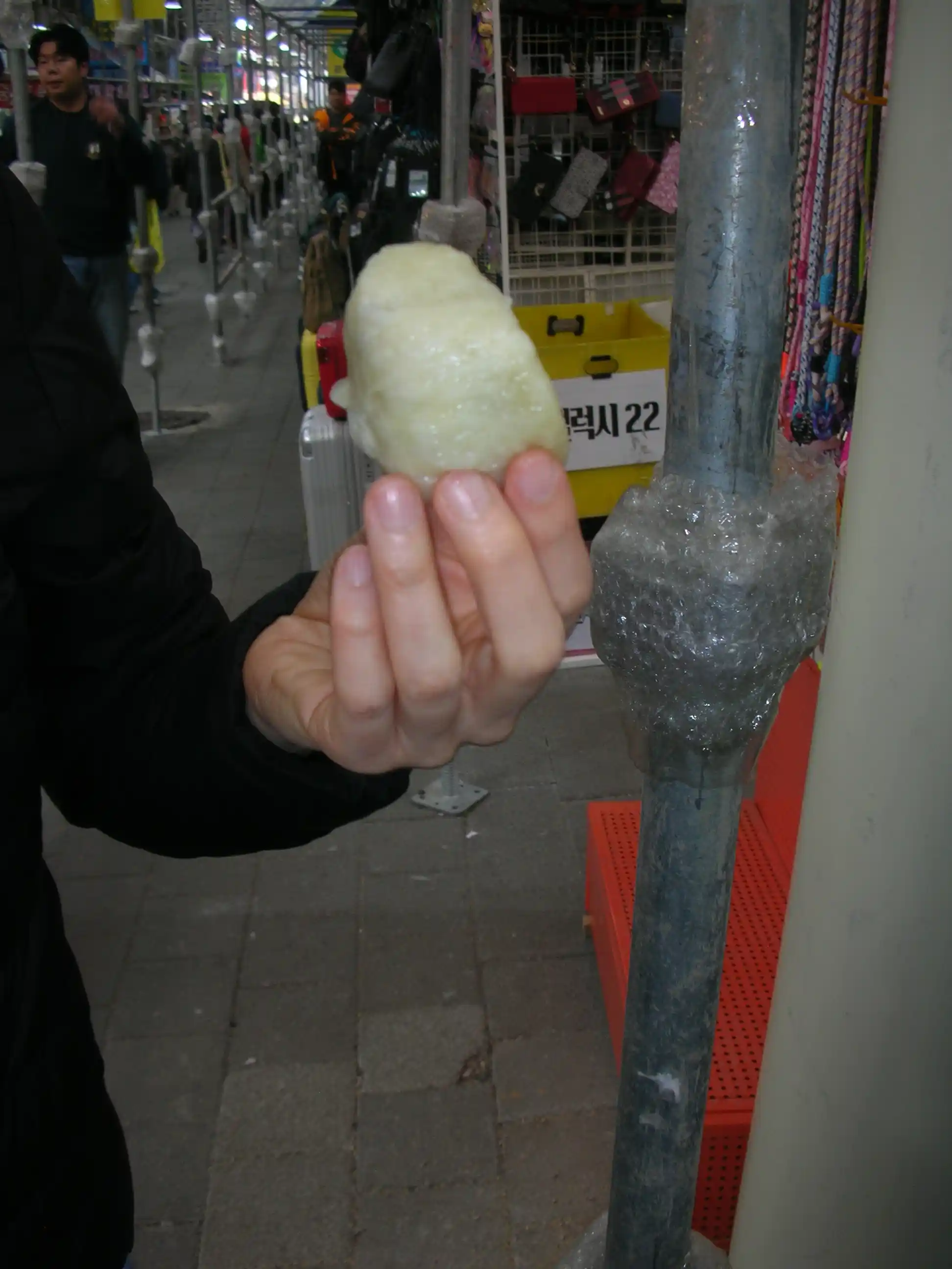 Drei Reiskuchen = 1₩. (Umgerechnet ungefähr 0,61€).