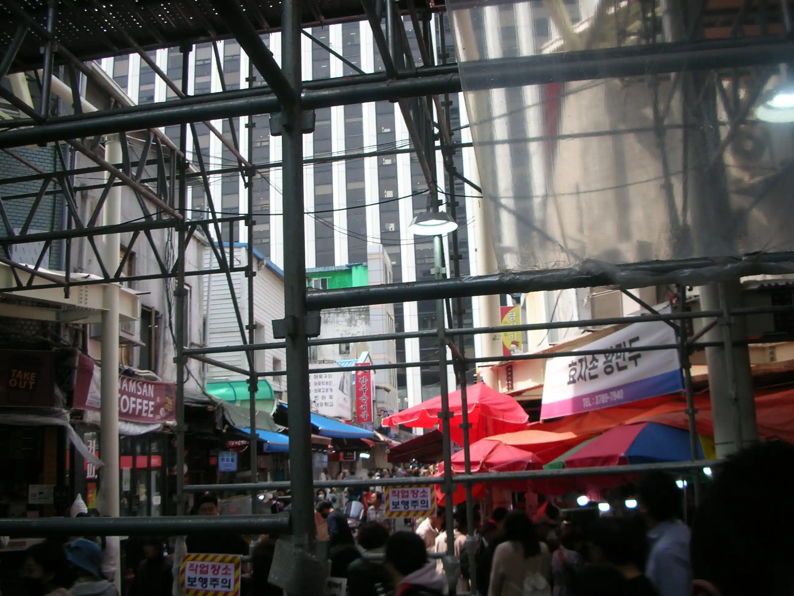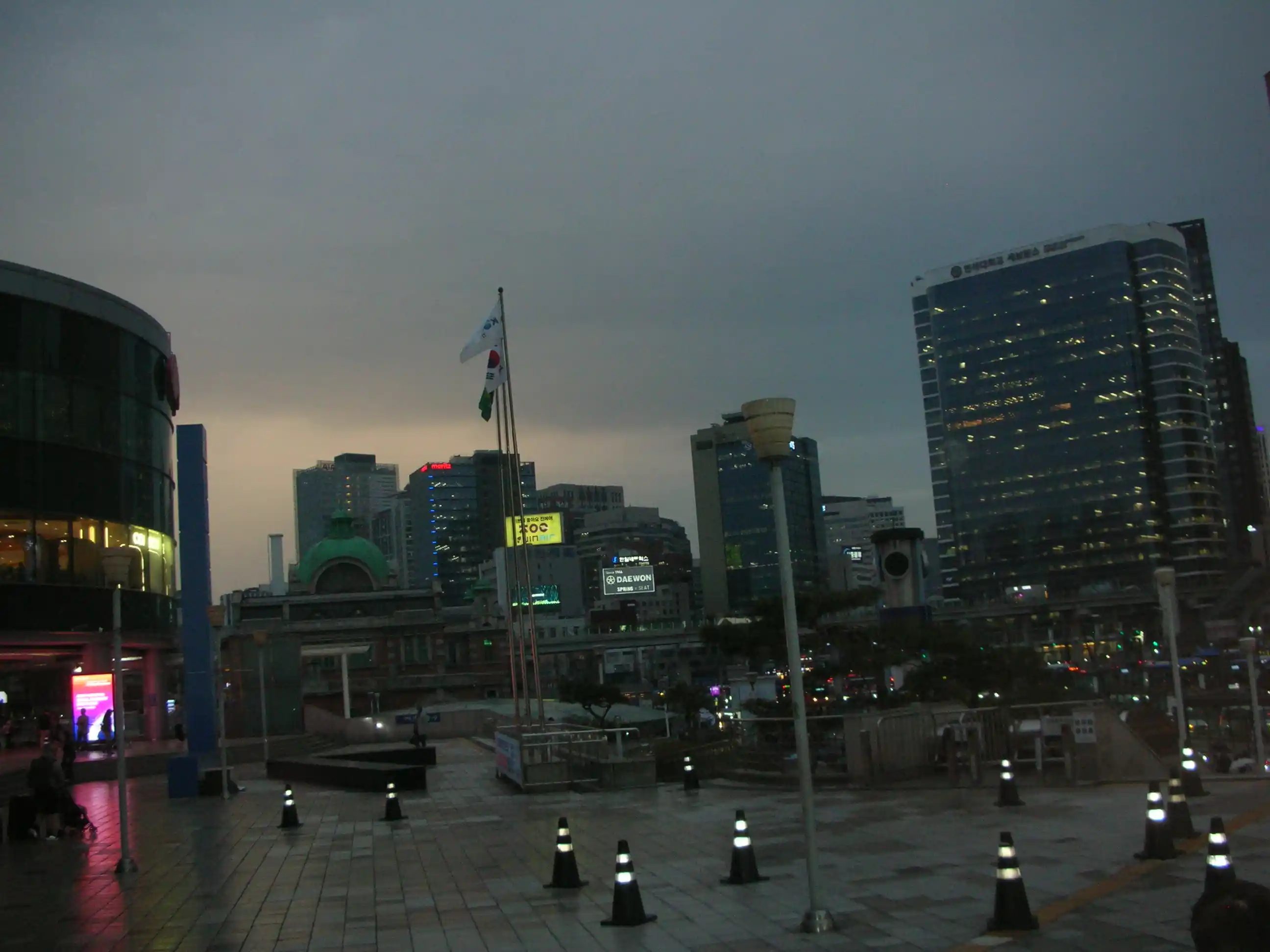 Nach dem Regen spiegeln sich die Lichter im asphalt. Zum Abendbrot gab es Bulgogi Whopper und Spicy Chicken Burger von Burger King, weil alle müde und ungedludig geworden sind. Dann haben wir Zugtickets für Freitag gekauft und sind mit dem Bus nach Myeongdong gefahren.