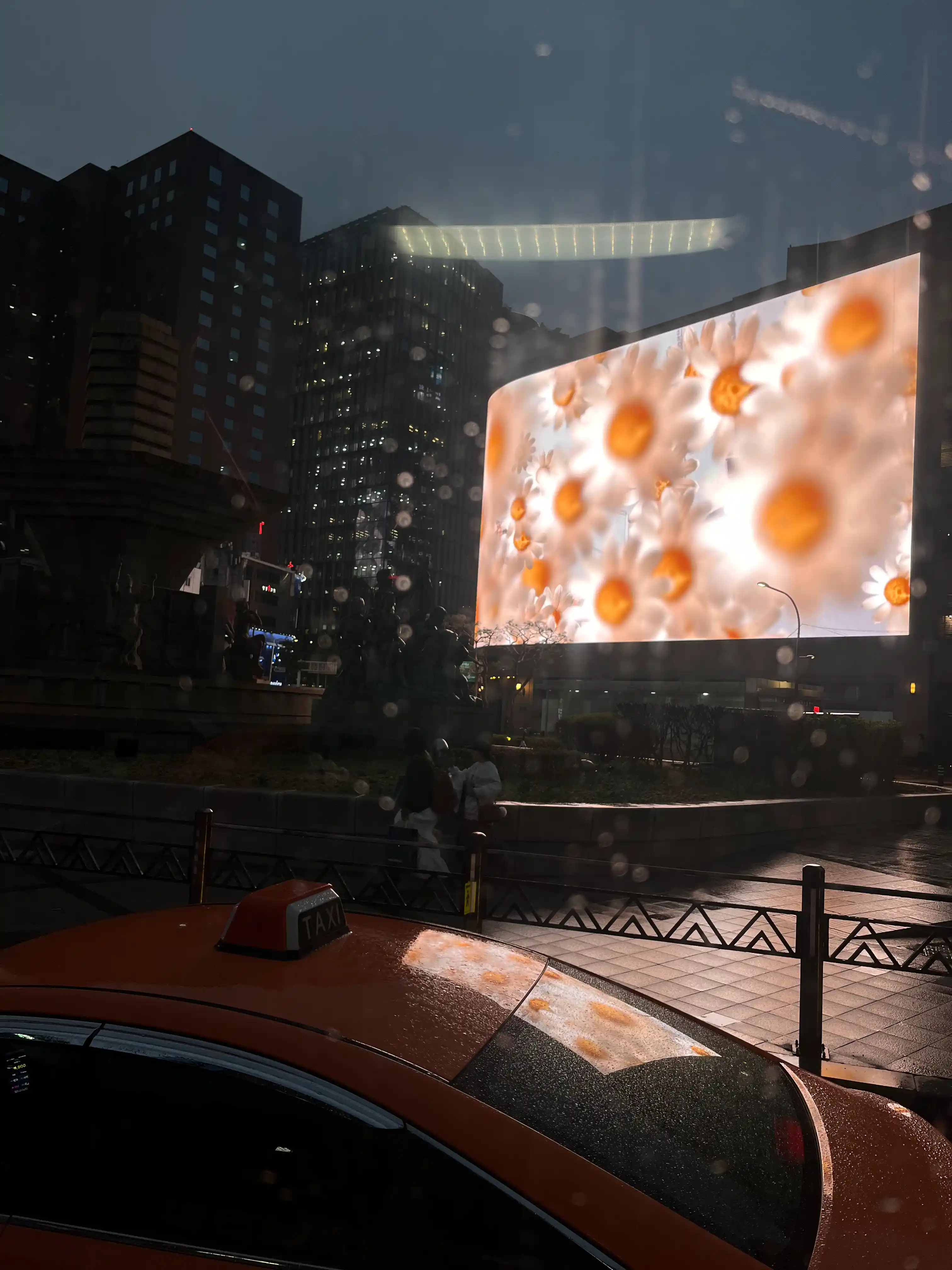 Im Bus sind wir noch an diesem riesigen Bildschirm vorbeigefahren der Blumen auf uns geregnet hat. Wunderschön!!